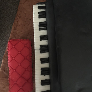 This is the most complicated cake I have ever done...it was a lot of work, but a lot of fun, too! For this Billy Joel-loving 18th birthday girl, I used her color scheme of red, white, and black to create a piano cake with fondant keys, piano bench, wooden floor, and miniature album covers. Of course, it's a red velvet cake with cream cheese frosting!